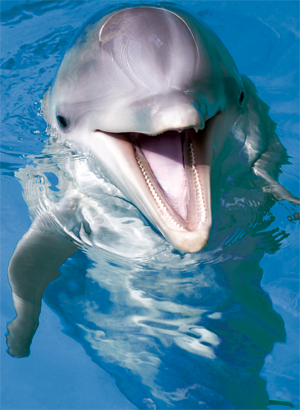 Sommige dolfijnsoorten, zoals de tuimelaar, hebben een gekromde bek. Daardoor lijkt het alsof de dolfijn glimlacht. Dolfijnen kunnen niet verdrietig of boos kijken, zoals wij dat kunnen. Ze hebben altijd een lachende bek. Ook als de dolfijn verdrietig dan wel boos is, of pijn heeft.